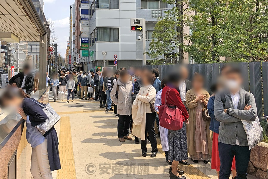 ※同じく水天宮 安産祈願の御祈祷受付に並ぶ多くの参拝者の様子(写真右に御祈祷受付があり、その手前に長蛇の列ができている様子です)|撮影:安産祈願・戌の日ドットコム