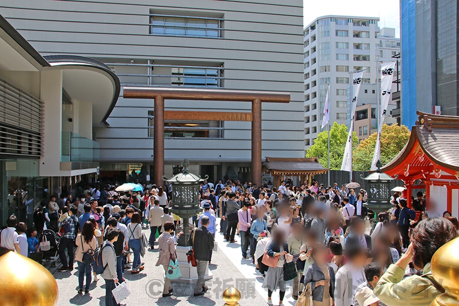 ※安産祈願で有名な水天宮(東京都中央区)「大安 日曜日の戌の日」の境内、人人人の混み具合の様子|撮影:安産祈願・戌の日ドットコム