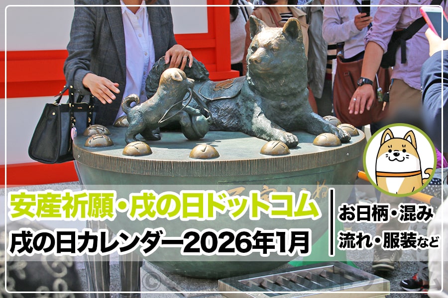 ※なお↓こちらのページで、同ページで紹介の2026年1月の戌の日を含めた2026年の1月〜12月までのすべての戌の日を一覧で紹介しています。2026年の戌の日チェックにぜひこちらもご利用下さい。