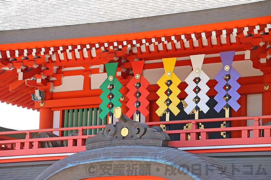 千葉神社 分霊社・尊星殿2階部分に五色の御幣(ごへい)が飾られている様子