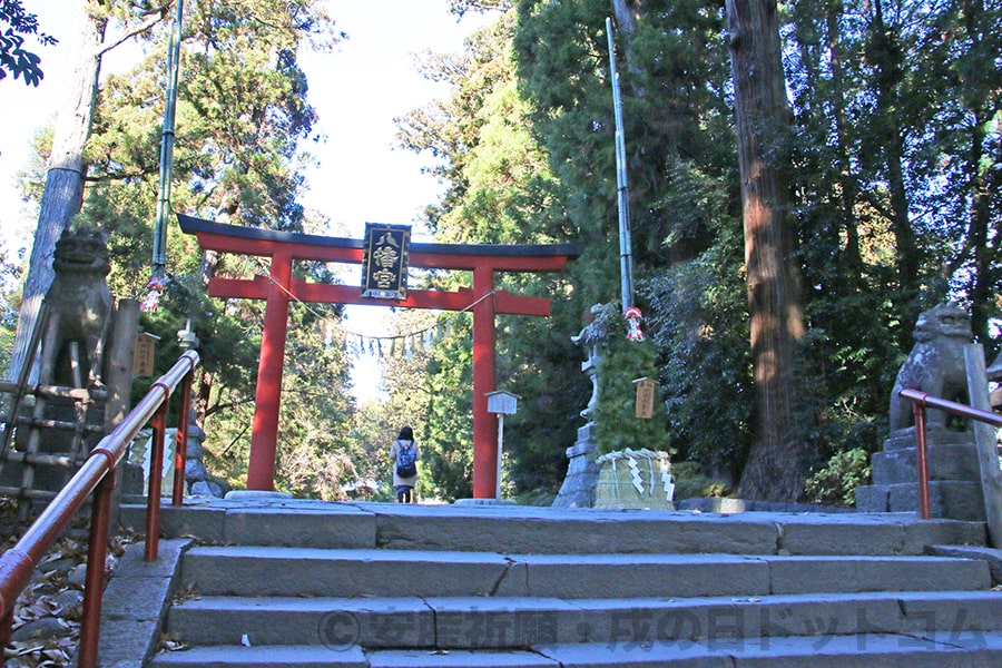 勾配がきついので、安産祈願の妊婦さんにはキツい石段です。車で来る方がほとんどでしょうから、後述する駐車場から御社殿(本殿)に向かうことをおすすめします。