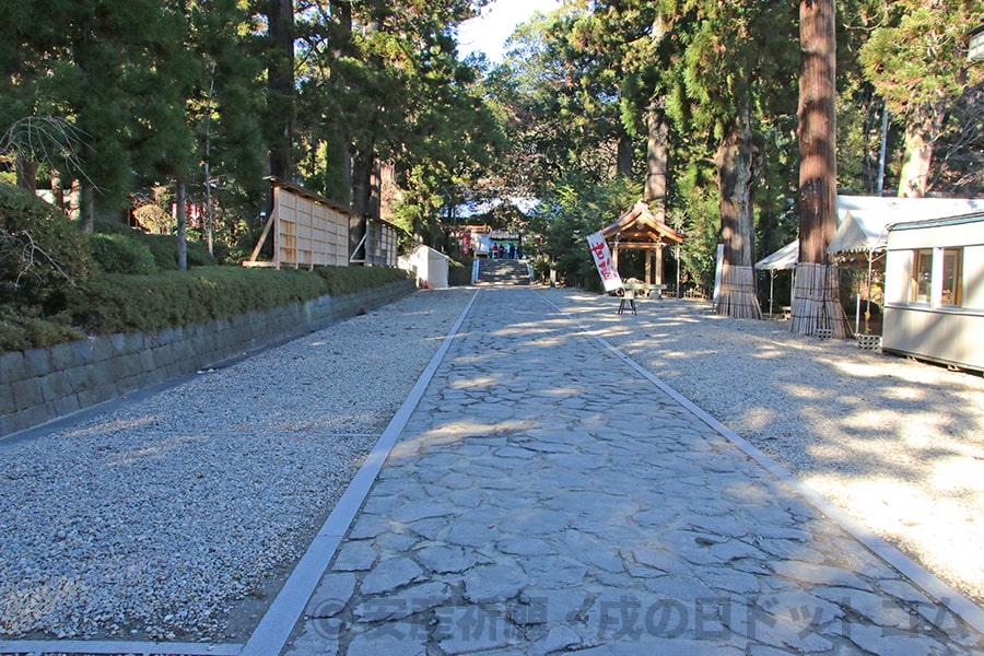↑写真のように石畳の道ですので、妊婦の方にはこちらもちょっと歩きづらくキツいので、底の平らな靴やスニーカーなどあるきやすく、転びづらいクツで参拝しましょう。