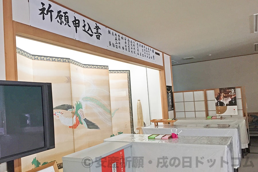 祈祷申し込み時に該当の祈祷時間が伝えられますので、その時間まで同祭儀棟内もしくは境内にて待ち合いをします。