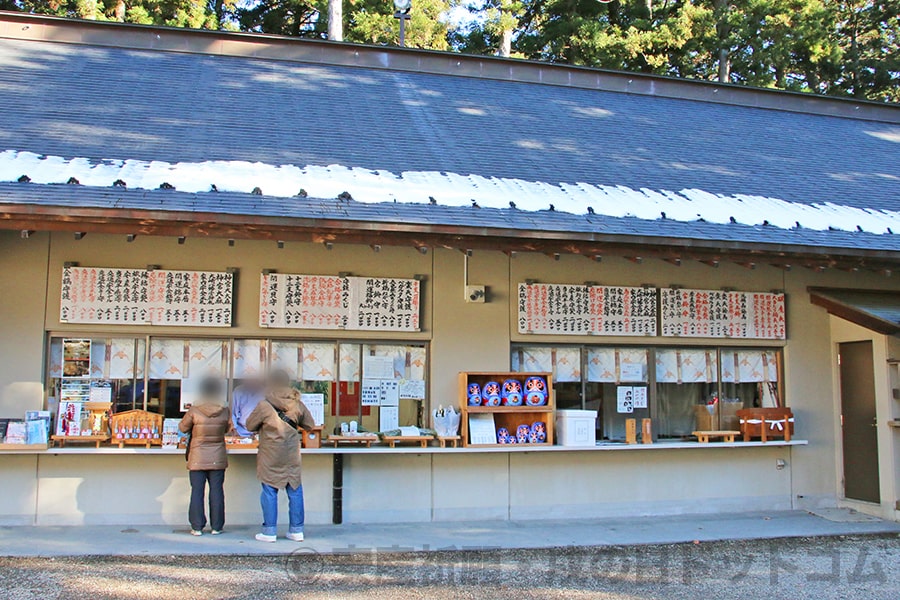 安産のお守りを含めた各種お守りや授与物も、↑のように祭儀棟に授与所窓口がありますので、こちらで授与してもらうことができます。