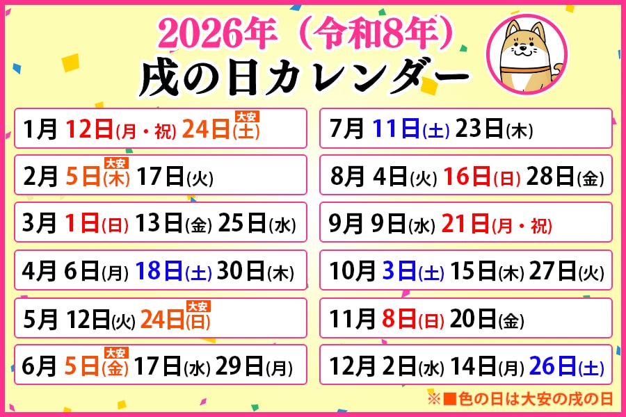 ※2026年1月の各戌の日ごとの詳細情報はこちらから↓