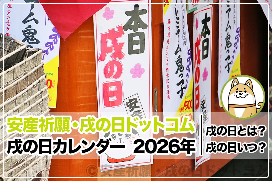 2026年(令和8年)の安産祈願の戌の日をカレンダーで紹介しています。