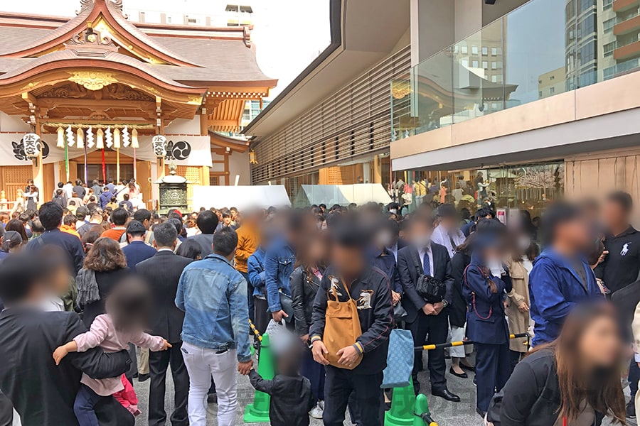 2日目は土曜日休日大安の戌の日で、最大級の混み合いになる予想。