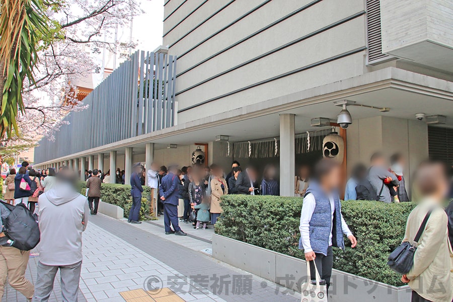 ※同じく水天宮 安産祈願の御祈祷受付に並ぶ多くの参拝者の様子(写真右に御祈祷受付があり、その手前に長蛇の列ができている様子です)|撮影:安産祈願・戌の日ドットコム