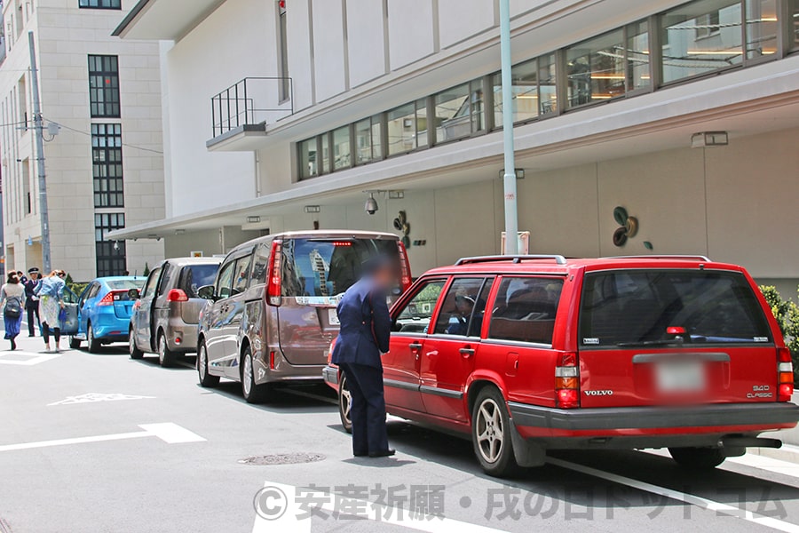※写真:水天宮(東京都千代田区)土曜日休日の仏滅戌の日の駐車場空き待ちの車の列の様子
