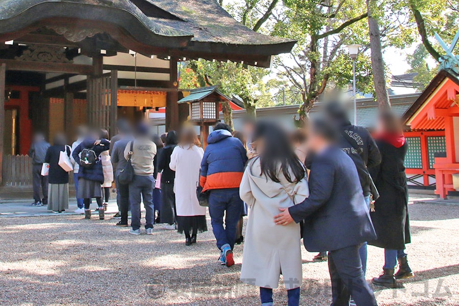 各戌の日の混み具合や、どのくらいの待ち時間になりそうなのかなども実際の戌の日の様子の写真などとともに詳しく解説。