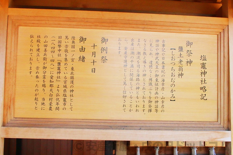 ※塩竈神社 御祭神・御由緒の案内掲示の様子(アップ)