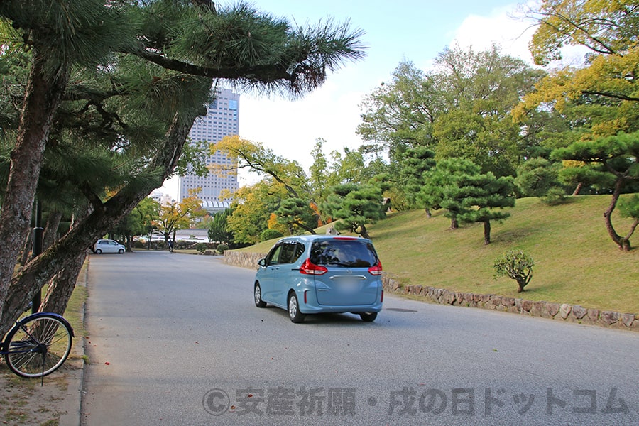 ※広島護國神社 広島城址公園内を護國神社に向かう車の様子