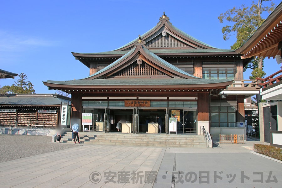 ちなみに寒川神社の御祈願受付所は、御社殿の手前右手にある↑写真の客殿内にその御祈願受付所があり、その受付窓口にて安産祈願の御祈祷の申し込みができます。