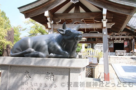 天満宮を象徴する撫牛像。立派な像ですが、比較的新しく奉納されたものでしょうか。キレイな撫牛像です。