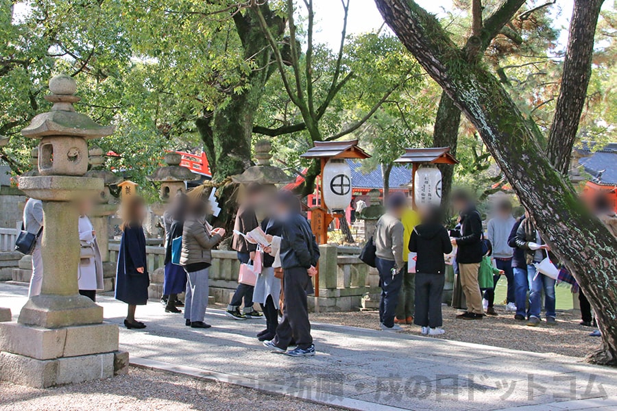 ※住吉大社 境内の安産スポット「誕生石」の場所に戌の日に訪れる多くの妊婦ママさんと付き添い家族の様子|画像提供:安産祈願・戌の日ドットコム