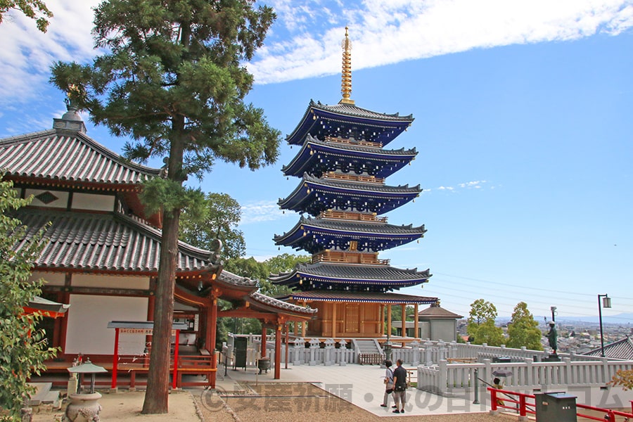 こちらは本堂のある場所から少し上ったところにある大師堂とその近くに最近できたであろう、新しい青い塔がそびえ立っています。