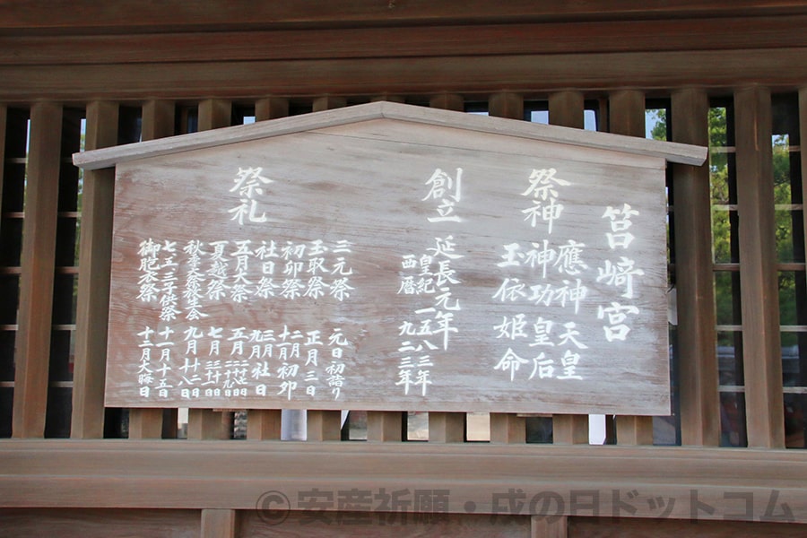 筥崎宮 ご祭神、祭礼時期に関する案内看板の様子