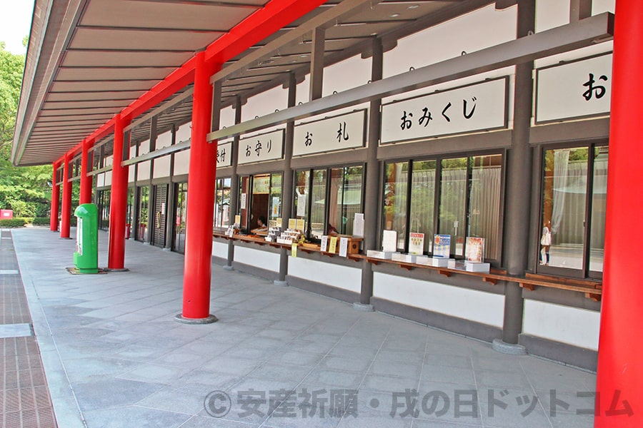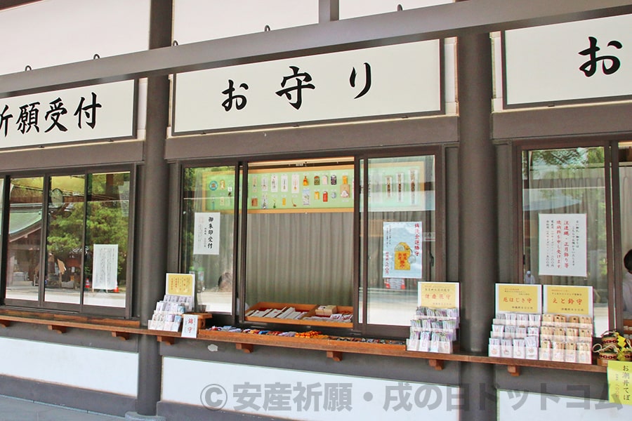 安産を含めたお守りや各種授与品は、同じく社務所の受付窓口の並びにある授与所窓口にて授与してもらえます。